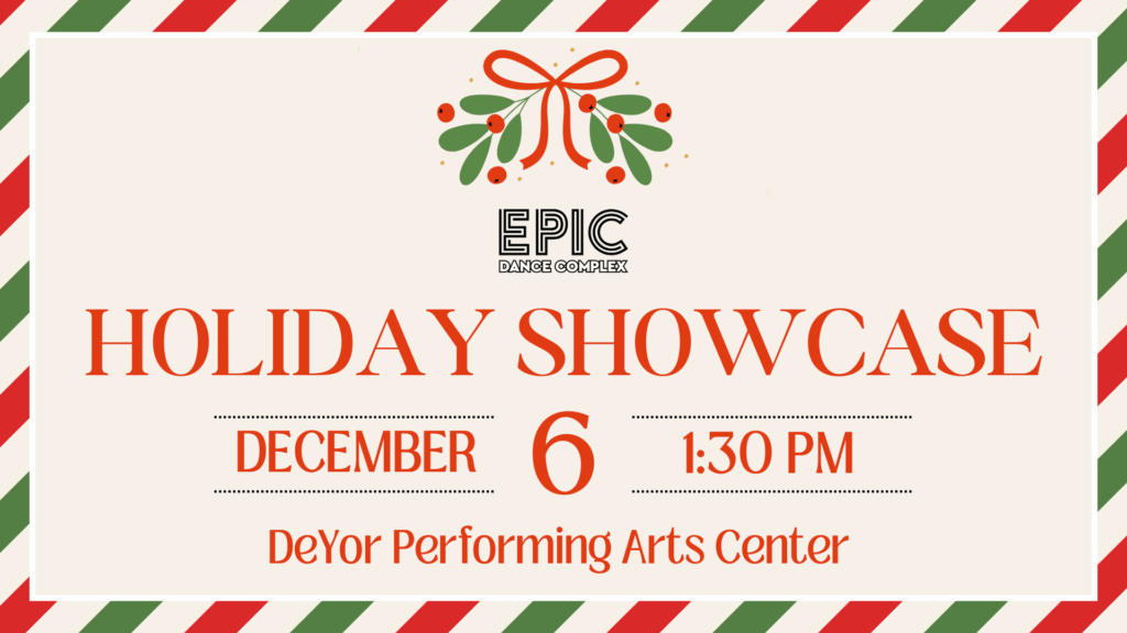 Join us for an exciting Holiday Dance Showcase, where our talented dancers will take the stage to display all the hard work and dedication they’ve put in since September! From graceful ballet routines to upbeat hip-hop moves, this showcase celebrates the joy of dance and the growth of our students. Come and cheer on these amazing performers as they light up the stage with festive energy and holiday spirit. It’s a perfect way to kick off the season with family, friends, and a little bit of sparkle!
